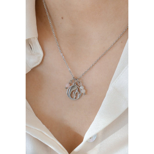 Ketting Moeder & Baby Maansteen Rozenkwarts - Zilverkleurig - RVS