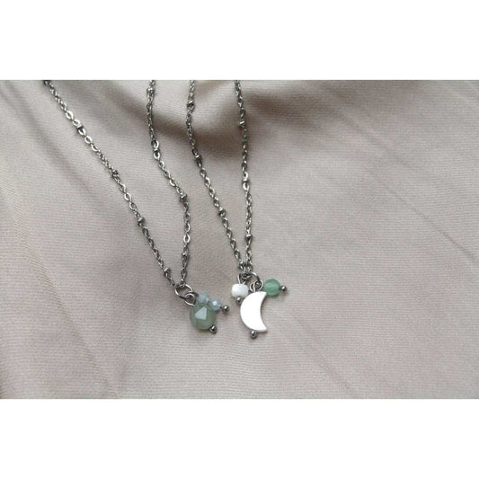 Ketting Schelp Maan & Aventurijn – Zilverkleurig - RVS
